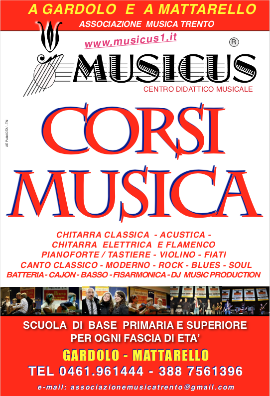 Unisciti ai corsi di Musicus e Musicus Rock presso le nostre sedi di Gardolo e Mattarello. Offriamo lezioni di strumento e canto per ogni età e livello.